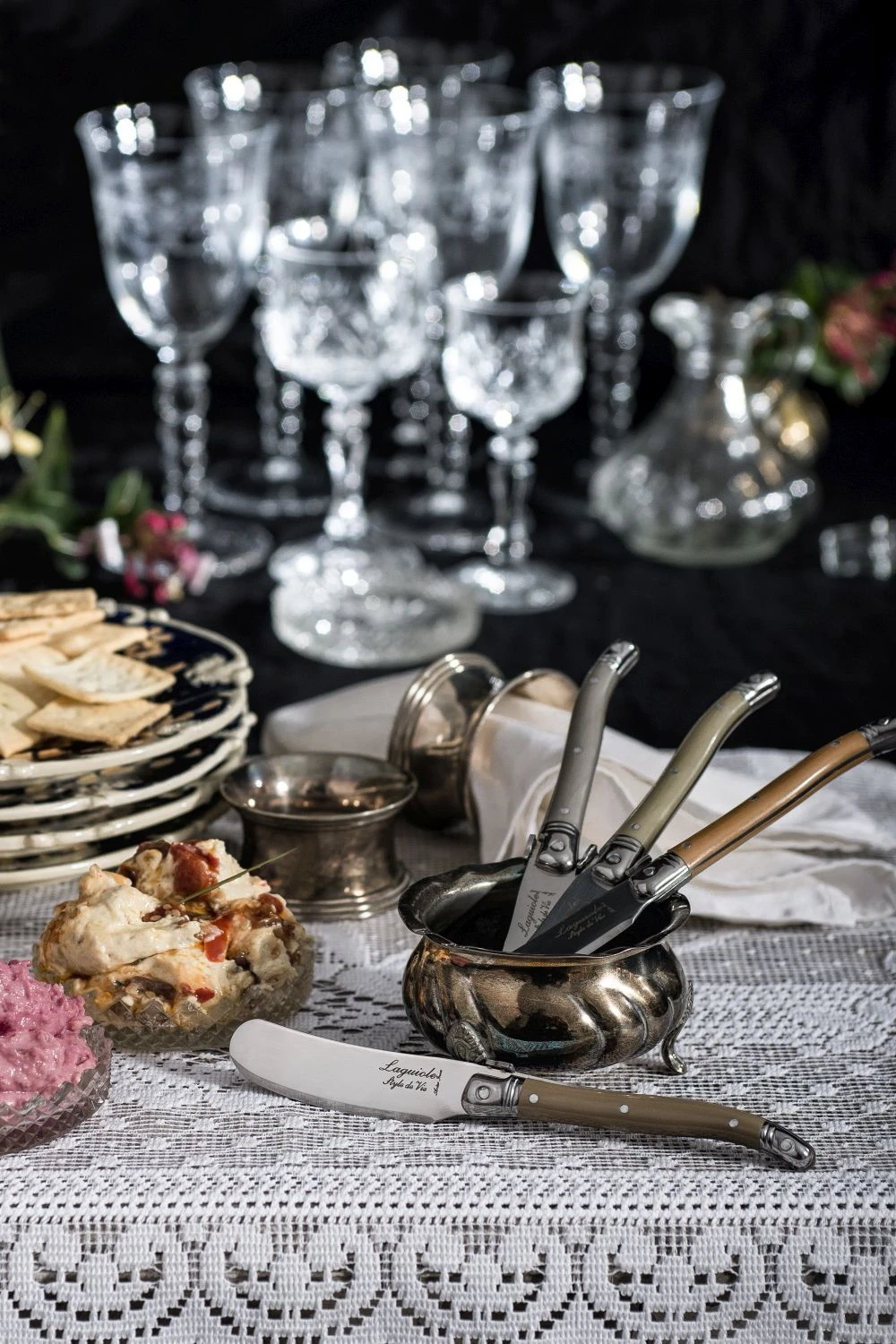 Uw ontbijt verdient een mooi opgemaakte tafel. Daarvoor zijn deze botermessen van Laguiole de ideale aanvulling. De messen zijn gemaakt van roestvrij staal en zijn vaatwasmachinebestendig. Het lemmet is glad geslepen en heeft een afgeronde punt zodat uw brood niet scheurt of beschadigt. Uiteraard zijn de botermessen van Laguiole ook zeer geschikt bij borrelhapjes voor het smeren van toastjes.