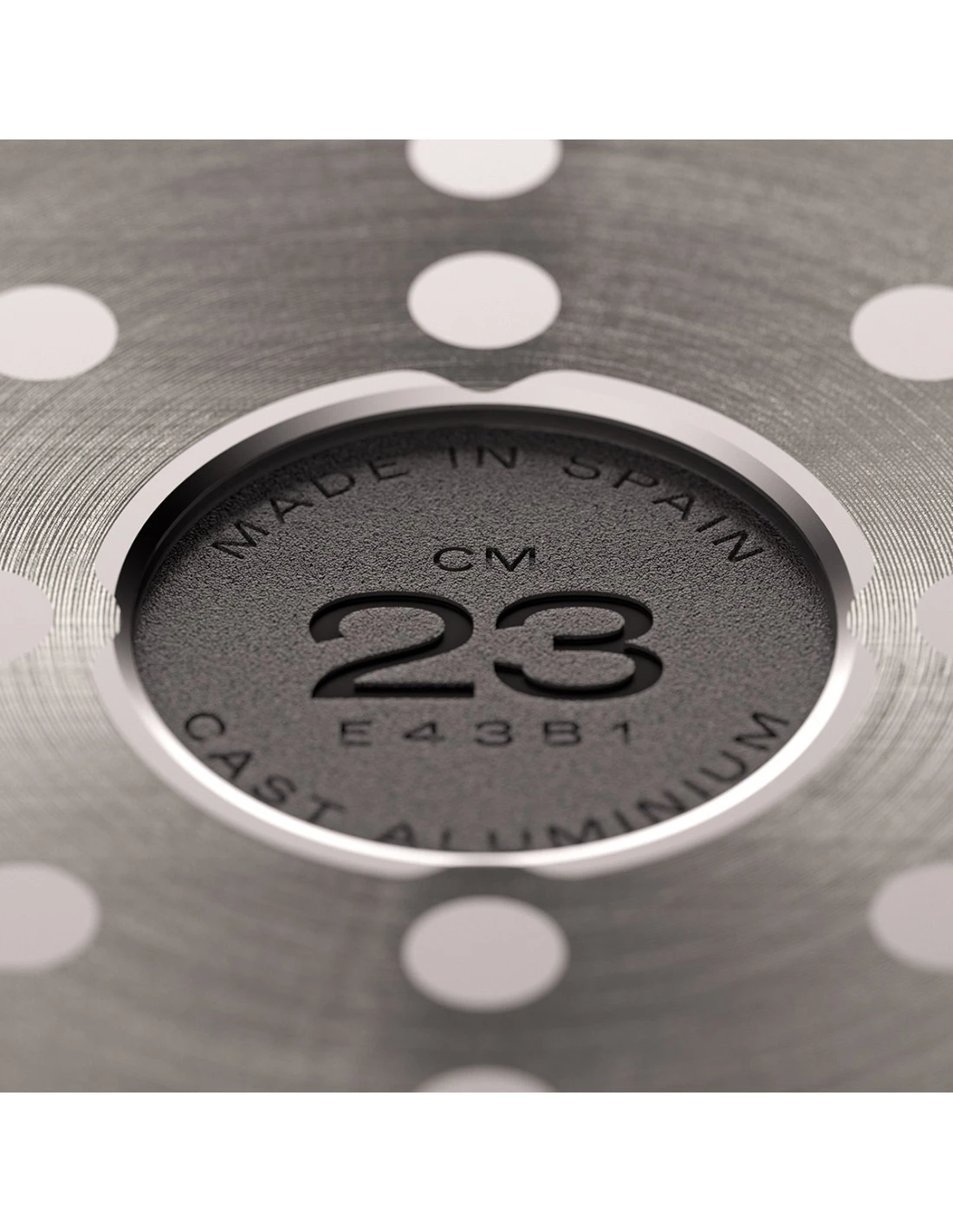 De Grillpan heeft een afmeting van 23 cm bij 23 cm en is geschikt voor alle warmtebronnen, inclusief inductiekookplaten. Daarnaast is hij ovenbestendig tot 260ºC. De stijlvolle en ergonomische roestvrijstalen handgreep wordt niet heet tijdens het koken.